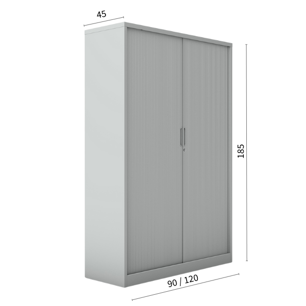 De metalen roldeurkast Helios is speciaal ontworpen voor professionele kantooromgevingen waar ruimte, veiligheid en functionaliteit centraal staan. Dankzij de roldeuren van PVC opent de kast zonder dat er extra ruimte aan de voorkant nodig is, waardoor hij uitermate geschikt is voor compacte werkplekken en drukke kantoorruimtes. Helios is verkrijgbaar in meerdere afmetingen met hoogtes van 108,5 cm en 185 cm, en breedtes van 90 cm en 120 cm. De kast is ook beschikbaar in verschillende kleuren, zodat je altijd een model vindt dat past bij jouw kantoorstijl en inrichting.