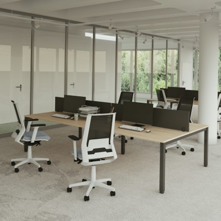 De benchtafel Modus is de ideale werkplekoplossing voor moderne kantoren die flexibiliteit, samenwerking en efficiënt ruimtegebruik belangrijk vinden. Dit benchbureau is ontworpen voor teams van 2, 4 of 6 personen en combineert comfort met een strak en duurzaam design. Dankzij de stevige melamine werkbladen en het robuuste stalen frame biedt dit benchbureau een prettige en stabiele werkplek.