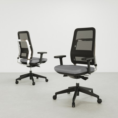 De 4D-armleuningen zijn in hoogte, diepte, breedte en hoek verstelbaar, waardoor je de optimale werkhouding kunt vinden die rug- en schouderklachten voorkomt. De stevige vijfsterbasis van polyamide en glasvezel garandeert stabiliteit en een lange levensduur. De soepele zwarte wielen met een diameter van 65 mm zijn gemaakt van polyamide met een zachte looplaag, waardoor ze geschikt zijn voor diverse vloertypen en stil rijden.