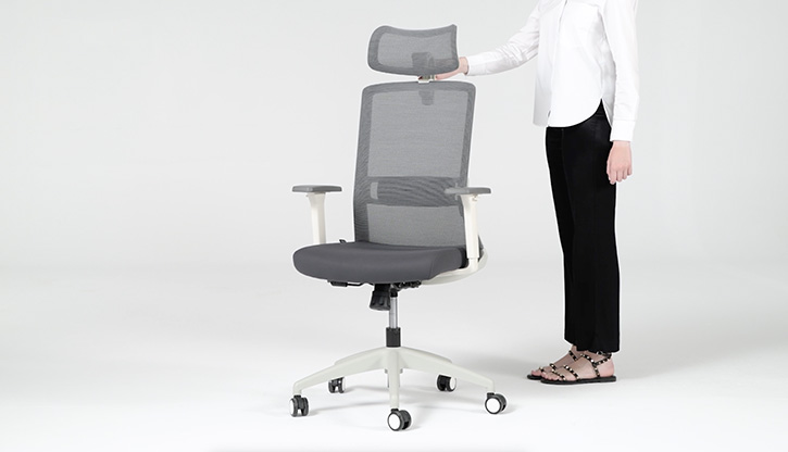 De Becca Grey Plus heeft een rugleuning gemaakt van ademende, ultra-sterke gaasstof met een stofachtig uiterlijk, die de rug uitstekend ondersteunt zonder te vervormen. De geïntegreerde hoofdsteun biedt extra ondersteuning voor nek en hoofd, wat helpt om spanning tijdens lange werkdagen te verminderen.