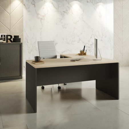 Een groot voordeel van het Tarnos bureau is het omkeerbare zijblad, dat je gemakkelijk aan de linker- of rechterkant kunt monteren. Hierdoor past het bureau in vrijwel elke kantoorindeling, ook in kleinere ruimtes. Deze flexibiliteit zorgt voor een ergonomische en gepersonaliseerde werkplek die aansluit op jouw specifieke wensen en werkwijze.