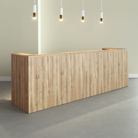 De Sotto-balie is vervaardigd uit 25 mm dik melamine met afgeronde ABS-randen, wat zorgt voor extra bescherming en een verzorgde uitstraling. De stevige verticale panelen van 19 mm garanderen een stabiele en solide constructie. Door de onderhoudsvriendelijke melamineafwerking is de balie bestand tegen intensief dagelijks gebruik, zelfs in drukke ontvangstruimtes.