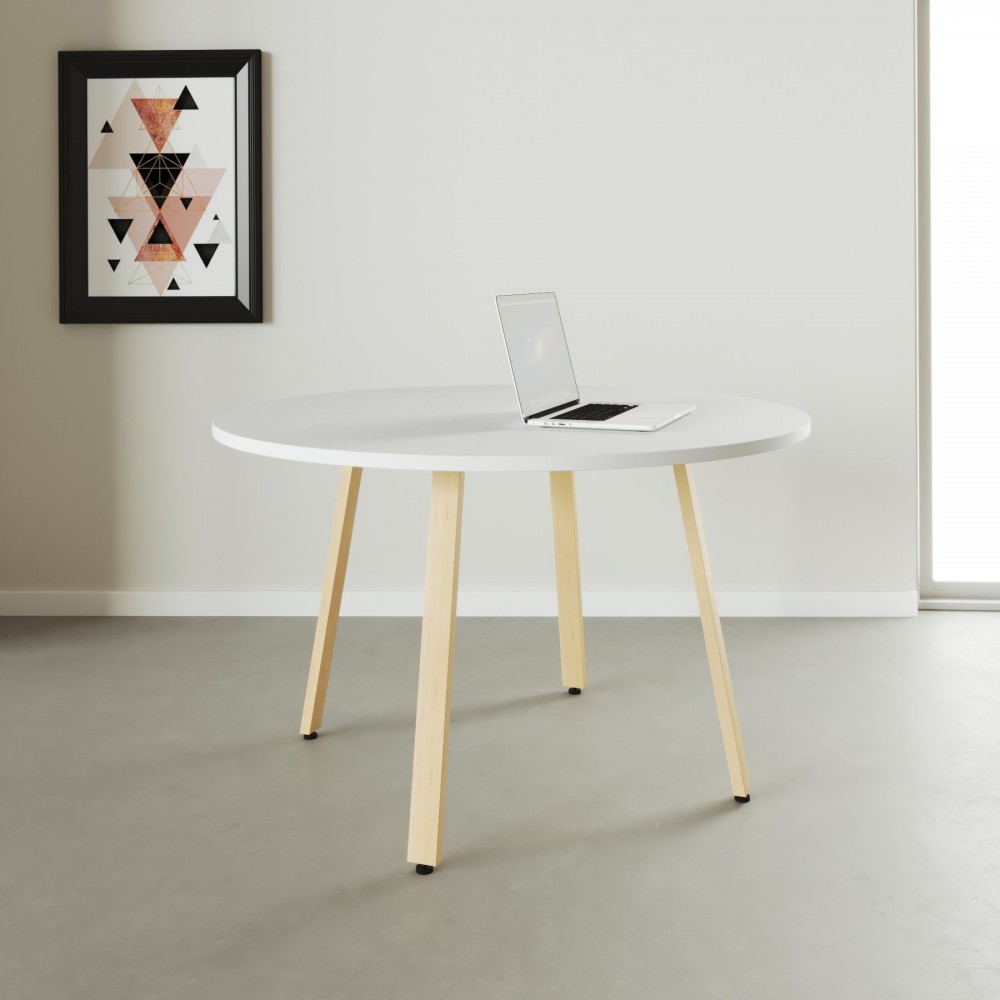 De tafel is verkrijgbaar in meerdere maten, waardoor hij geschikt is voor uiteenlopende ruimtes, van compacte vergaderruimtes tot middelgrote kantoren. Daarnaast biedt het design opties met een volledig houten frame of een combinatie van hout en wit metaal. Zo kan de Genius Rond Wood perfect worden afgestemd op verschillende interieurstijlen en wensen, waardoor hij in vrijwel elk modern kantoor of vergaderruimte een fraaie en functionele aanvulling vormt.